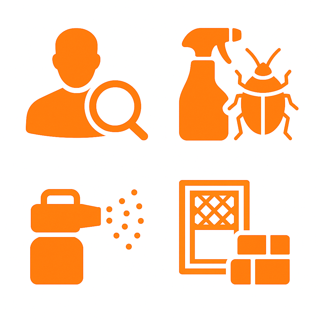 Speciális permetezéssel kezeljük a fertőzött területeket – a repedéseket, réseket, ablak- és ajtókereteket, ereszeket. A használt rovarölő szerek hosszú hatástartamúak, biztonságosak emberekre és háziállatokra.